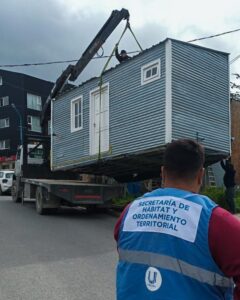 Este sábado, a partir de la denuncia realizada por vecinos y vecinas del sector, la Policía de la Provincia y personal de la Municipalidad de Ushuaia se constituyeron en Isla de los Estados, casi esquina Neuquén, donde constataron el traslado de una casilla a un predio municipal con intención de ocupación irregular. Se trataba de una persona de nacionalidad extranjera que intentaba ocupar de manera indebida un espacio que había quedado vacante tras la reubicación de los antiguos residentes.
