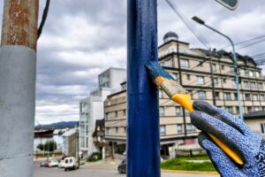 Asimismo, personal municipal avanzó con pintura en la señalética urbana del centro y del alumbrado público. También se llevaron adelante tareas de lijado y pintura en el Paseo Centenario, con distintos equipos desplegados a lo largo de la jornada.