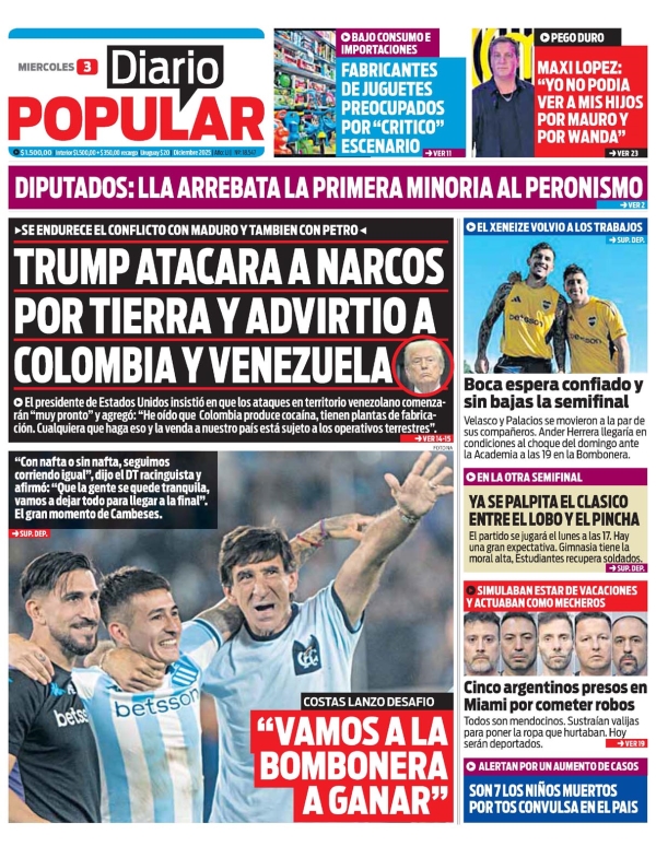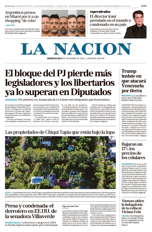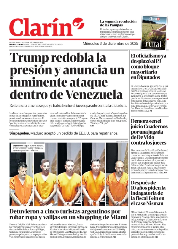 Noticias DIARIOS NACIONALES DEL 03/12/2025. diciembre 3, 2025 Continue Reading Previous DIARIOS FUEGUINOS DEL 03/12/2025.Next RIO GRANDE : ASÍ SERÁ LA FIESTA MUNICIPAL DEL ENCENDIDO DEL ARBOLITO