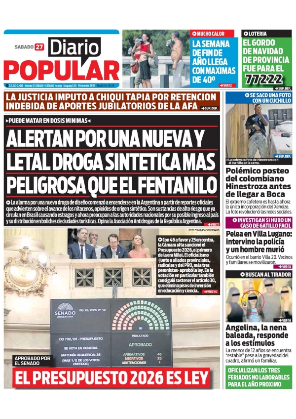 Noticias DIARIOS NACIONALES DEL 27/12/2025. diciembre 27, 2025 Continue Reading Previous CRONOGRAMA DE ATENCIÓN EN LOS CAPS EL FIN DE SEMANANext RIO GRANDE : ACTIVÁ TU VERANO EN CASA DE JÓVENES