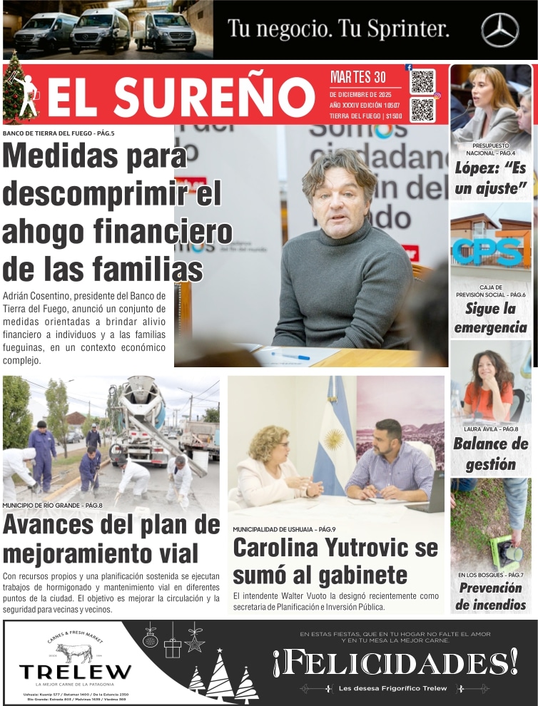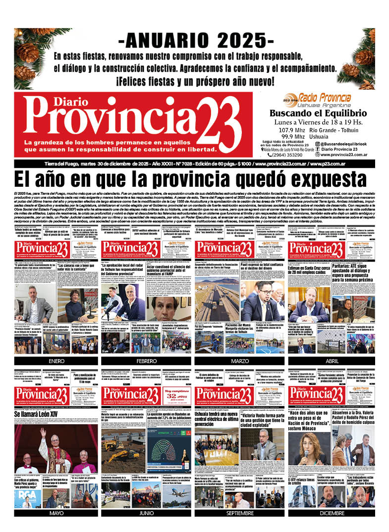 Noticias DIARIOS FUEGUINOS DEL 30/12/2025. diciembre 30, 2025 Continue Reading Previous USHUAIA : VUOTO NOMBRÓ A CAROLINA YUTROVIC COMO SECRETARIA DE PLANIFICACIÓN E INVERSIÓN PÚBLICANext DIARIOS NACIONALES DEL 30/12/2025.