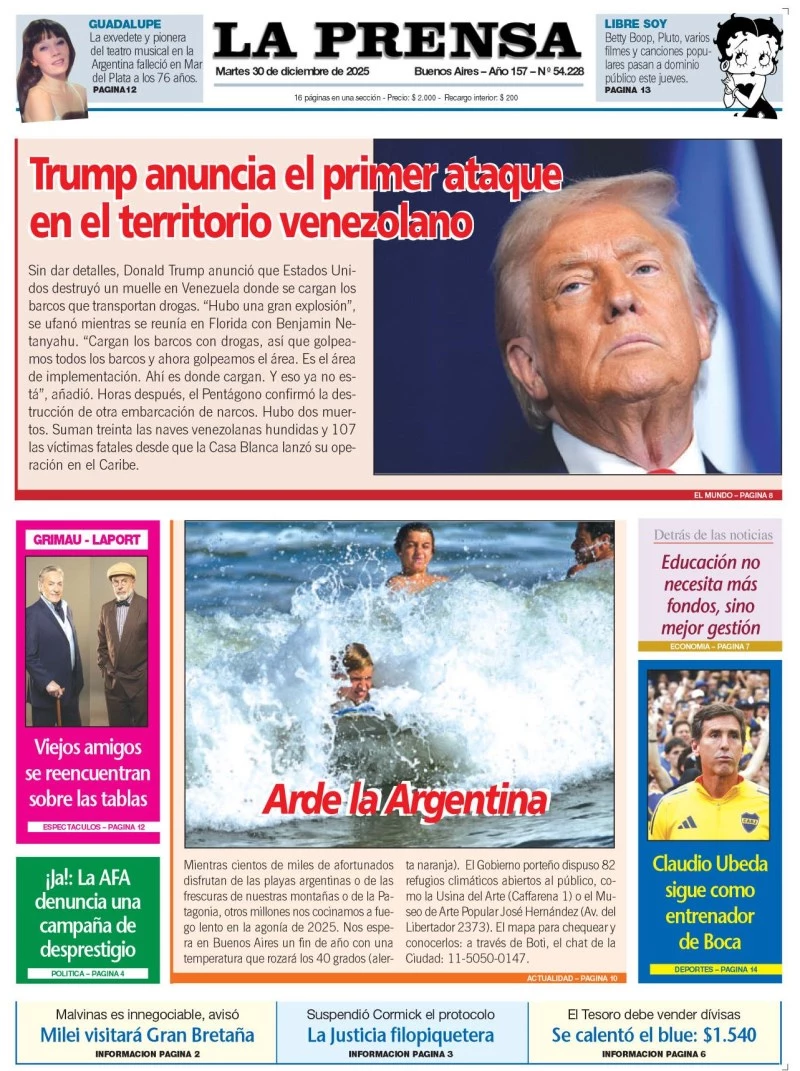 Noticias DIARIOS NACIONALES DEL 30/12/2025. diciembre 30, 2025 Continue Reading Previous DIARIOS FUEGUINOS DEL 30/12/2025.Next USHUAIA : LA MUNICIPALIDAD RECUERDA LA PROHIBICIÓN DE VENTA Y USO DE PIROTECNIA