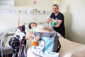 En representación del Municipio, la secretaria de Género y Desarrollo Comunitario, Ivana Ybars y la subsecretaria de Mujeres, Género y Diversidad, Luz Torres, visitaron al primer bebé del año y a sus papás Carol y Victorio.