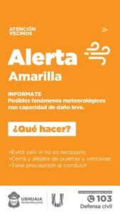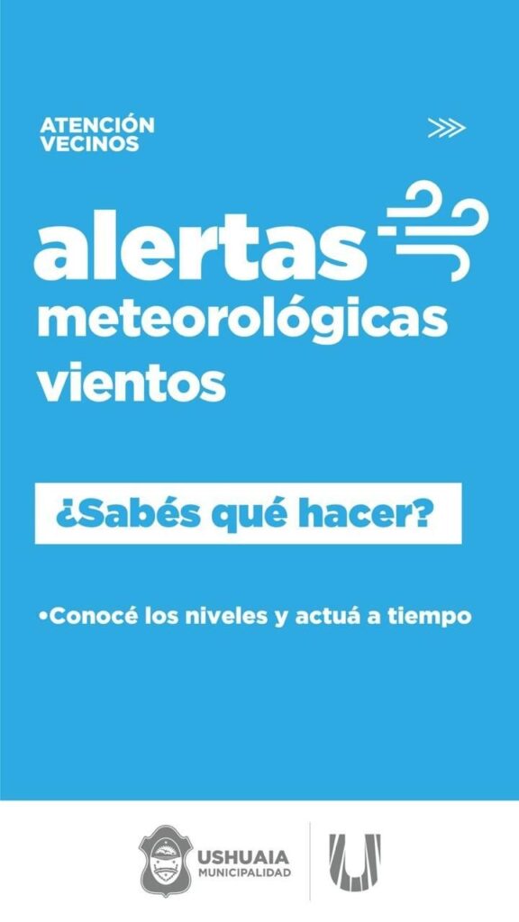 La Municipalidad de Ushuaia informa que, de acuerdo a los datos meteorológicos vigentes, se prevé un alerta amarilla por fuertes vientos para la madrugada, la mañana y la tarde del miércoles 15 de abril.