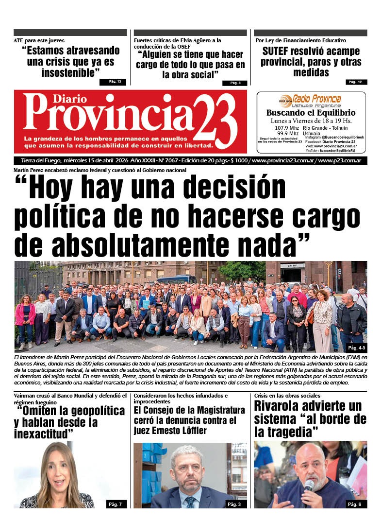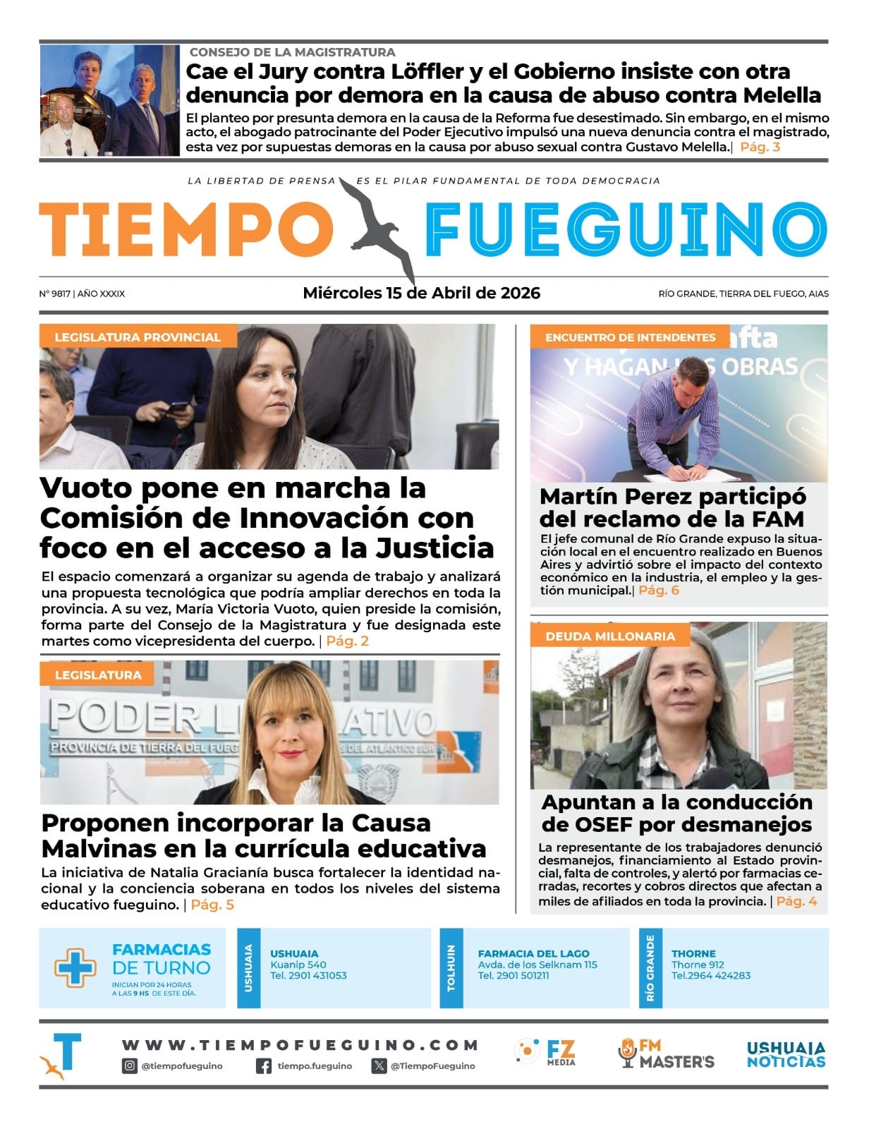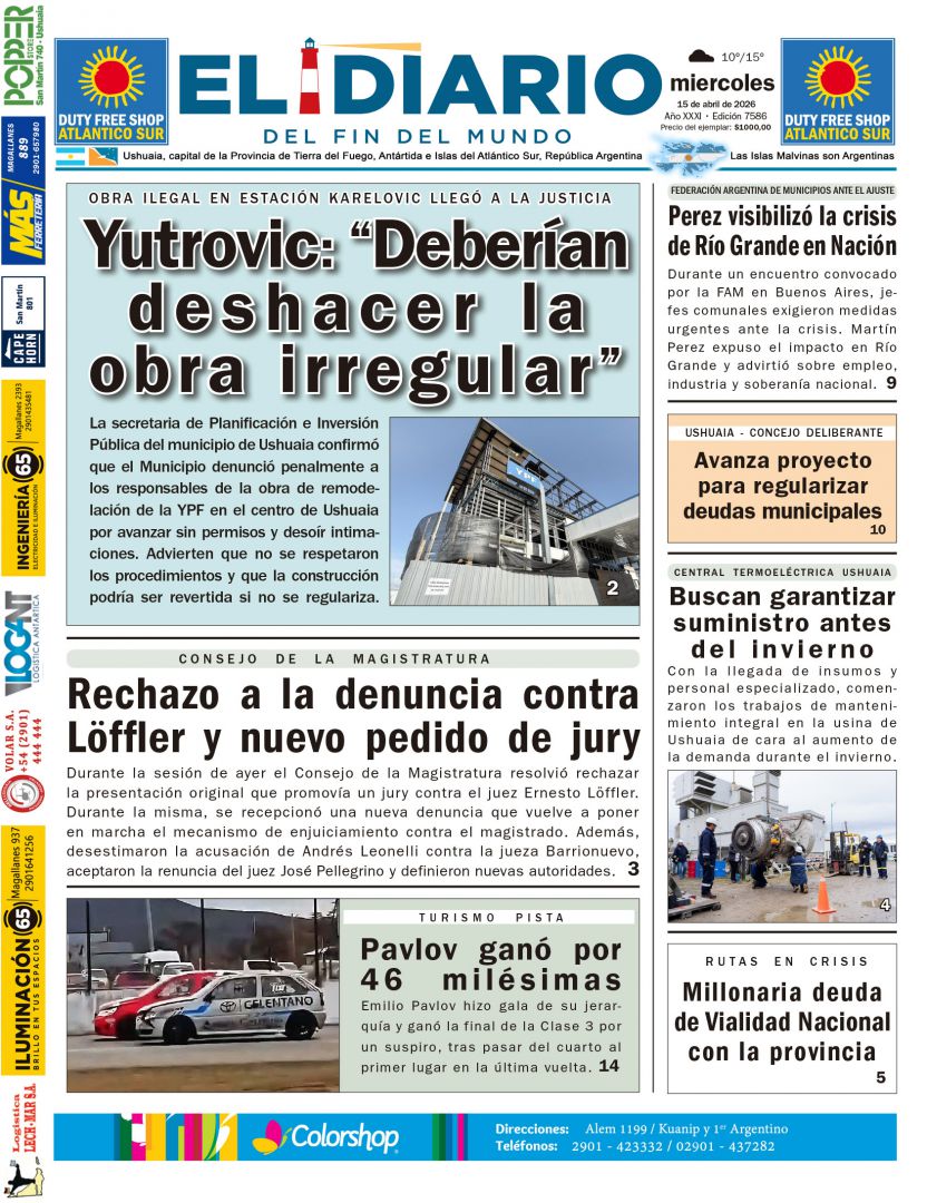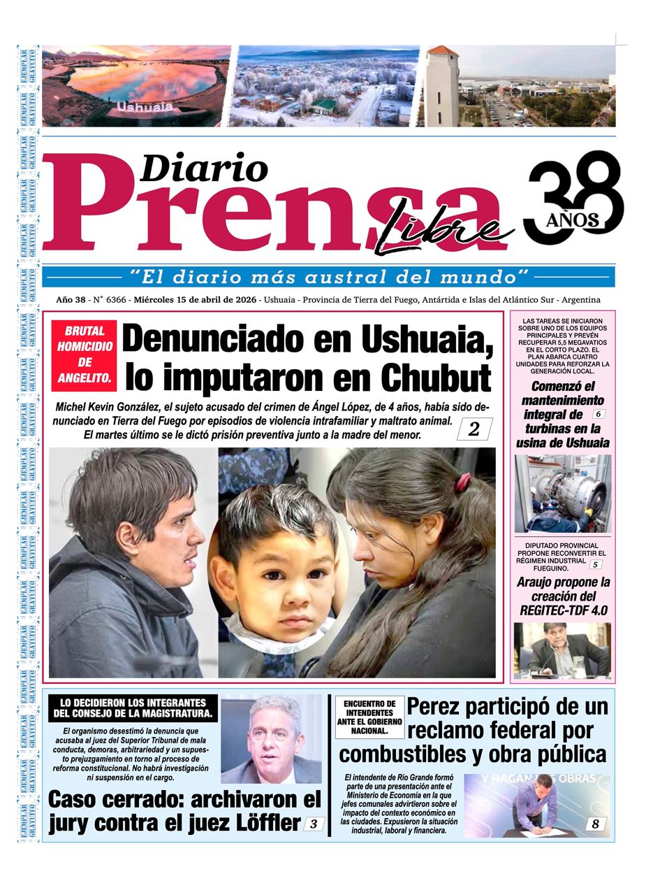 Noticias DIARIOS FUEGUINOS DEL 15/04/2026. abril 15, 2026 Continue Reading Previous USHUAIA : DEFENSA CIVIL EMITE RECOMENDACIONES ANTE ALERTA AMARILLA POR FUERTES VIENTOSNext DIARIOS NACIONALES DEL 15/04/2026.