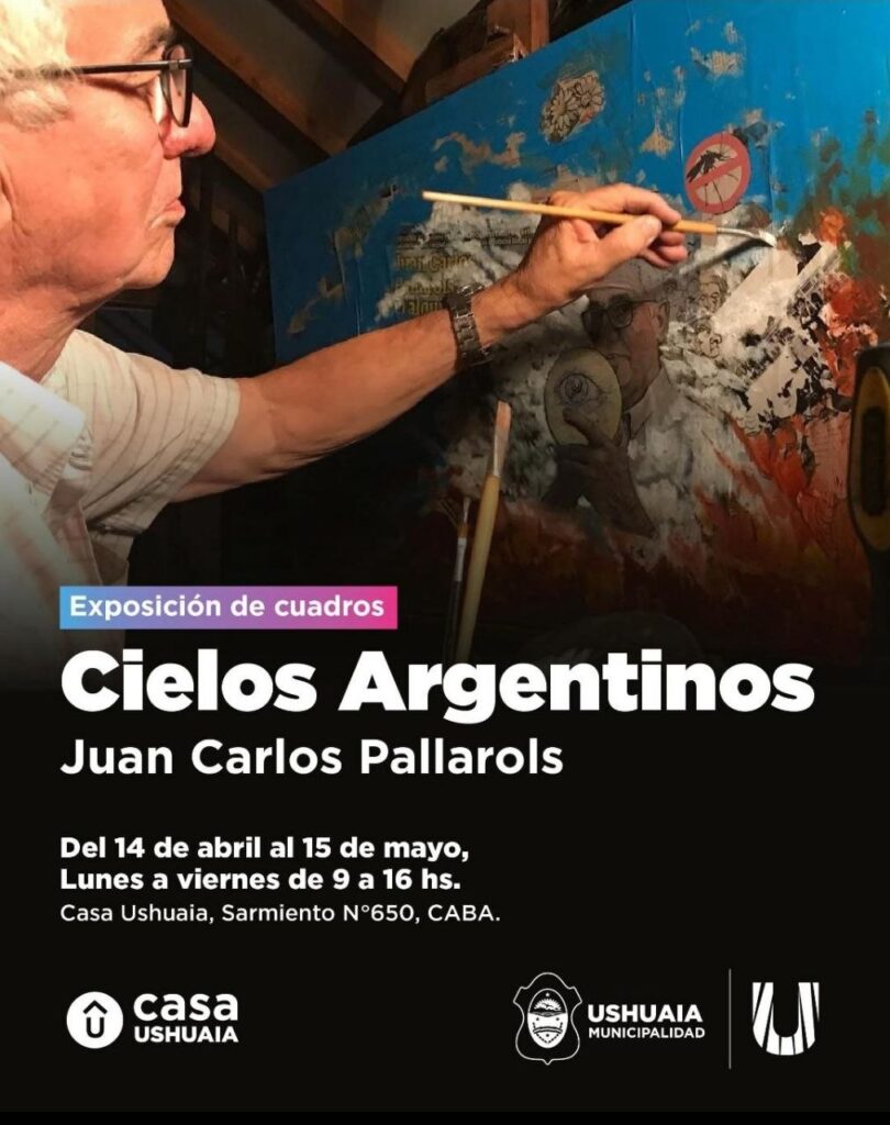 La Casa Ushuaia en Buenos Aires, ubicada en Sarmiento 650, inaugurará el lunes 21 de abril a las 18 horas la muestra de pintura “Cielos argentinos” del reconocido orfebre argentino de proyección internacional Juan Carlos Pallarols, quien estará presente durante la apertura.