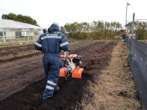 El proceso incluyó la preparación del terreno mediante motocultivador y desmalezado manual, garantizando condiciones adecuadas para el crecimiento del cultivo, que permanecerá durante el invierno bajo las condiciones climáticas propias de la región. Se prevé que, a partir de septiembre, con el rebrote de las plantas, se implemente el sistema de riego por goteo.