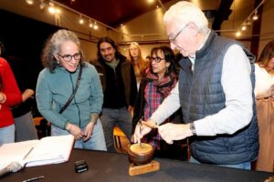 Durante el encuentro, desarrollado en un formato cercano, Pallarols compartió con los asistentes anécdotas, técnicas y reflexiones sobre su oficio, invitándolos además a intervenir colectivamente el cáliz del Papa, una de sus piezas más emblemáticas.