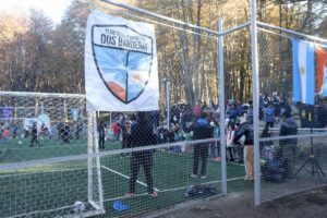 Ushuaia, domingo 19 de abril de 2026.- La Municipalidad de Ushuaia inauguró el nuevo playón deportivo del barrio Dos Banderas, en un acto que se llevó adelante en la Plaza Nunca Jamás con la participación de vecinos, vecinas, familias y una gran cantidad de niños y niñas que disfrutaron de actividades recreativas, juegos y entrega de regalos.