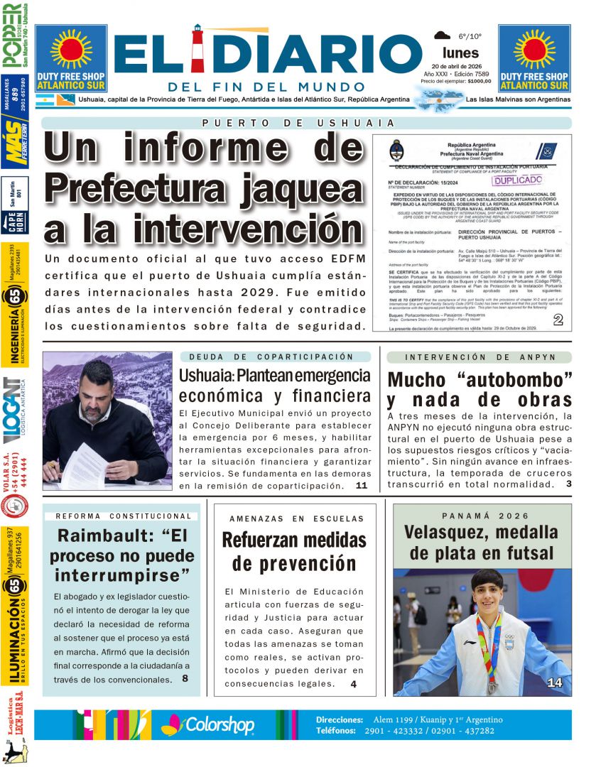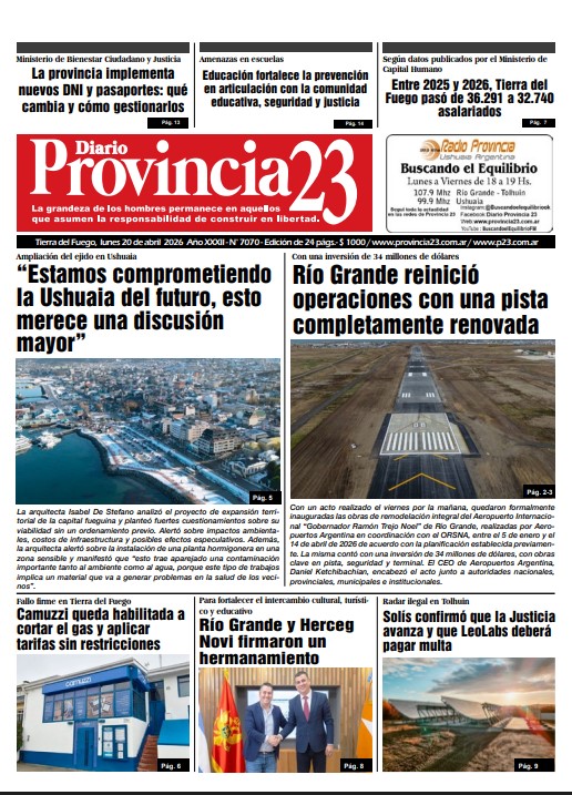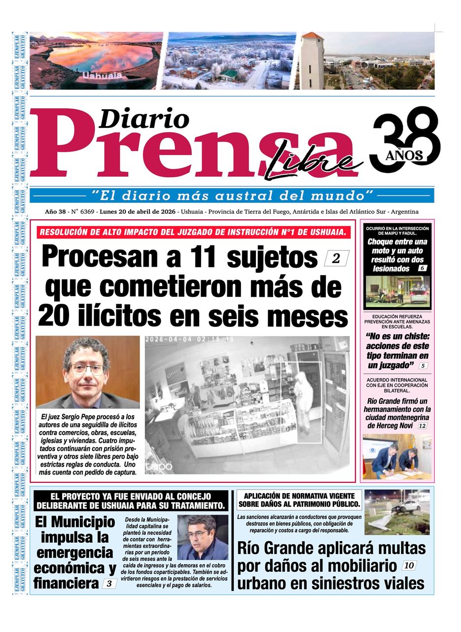 Noticias DIARIOS FUEGUINOS DEL 20/04/2026. abril 20, 2026 Continue Reading Previous Córdoba: Un espectador murió en un impactante accidente en el Rally Sudamericano en las Altas CumbresNext DIARIOS NACIONALES DEL 20/04/2026.