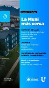La Municipalidad de Ushuaia desplegará este sábado 13 de septiembre el dispositivo “La Muni más Cerca” en los barrios Pipo,...